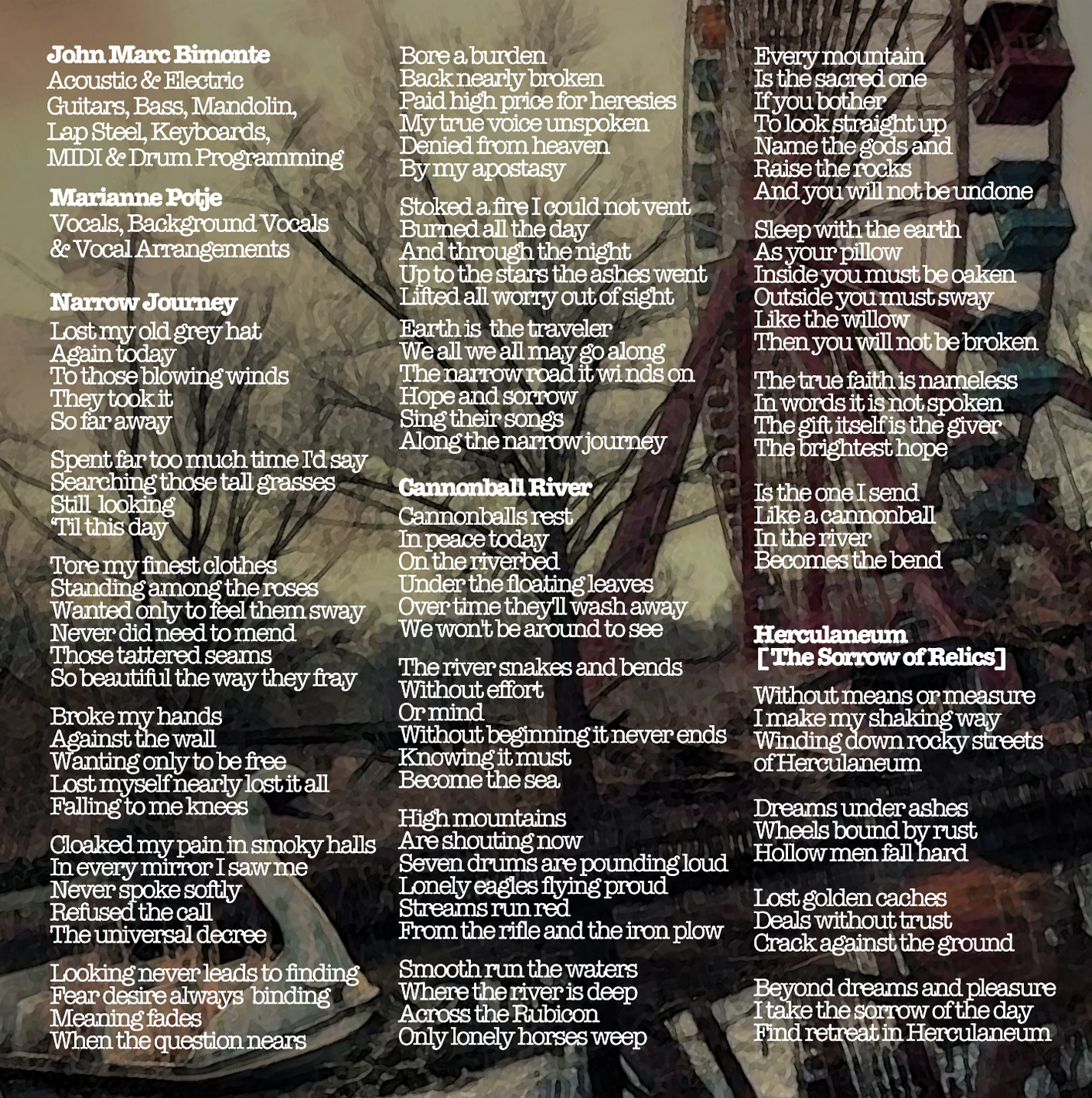 The Disenchanted Land is the debut release of contemporary Americana music from Empire of Ghosts. The band consists of multi-instrumentalist John Marc Bimonte and vocalist Marianne Potje. The record explores the themes of finding joy and peace while navigating a landscape of impermanence and struggle.